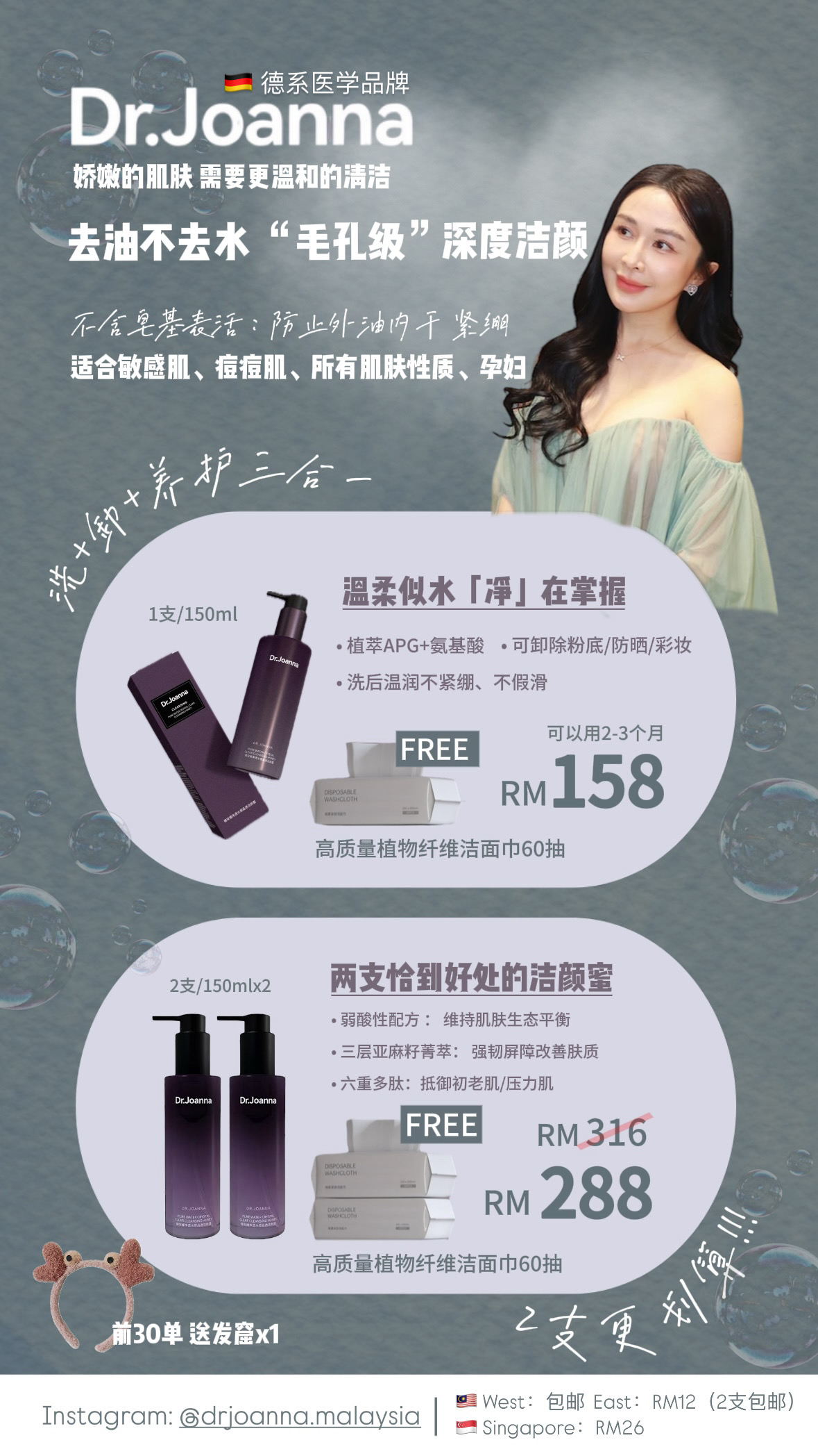 1️⃣洗卸养三合一洁颜蜜: 扣RM12 & 送1包高质量植物纤维洁面巾60抽