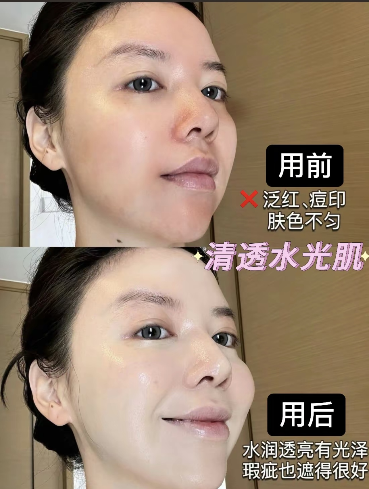 自带定妆粉饼、可水光肌可哑光肌,一秒切换。